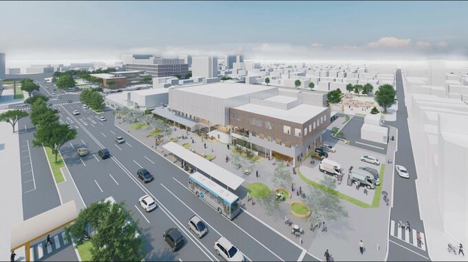 市が発表した基本設計によりますと「常盤通りにぎわい交流拠点施設」には延べ床面積およそ4700平方メートルの鉄骨造3階建ての公共民間複合施設と、鉄骨造4階建ての立体駐車場が建設されます。