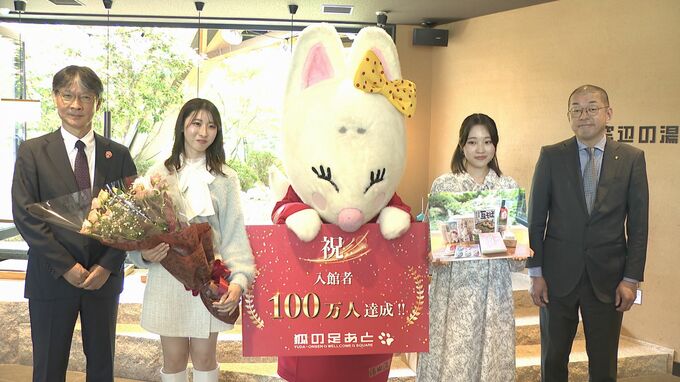 25日、足湯が人気の観光施設、山口県山口市の「狐の足あと」が、オープンから9年1か月で来館者100万人を達成しました。