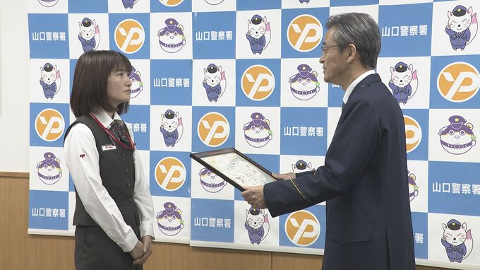 山口市の山口宮野郵便局に勤務する伊藤祐子さん(37)に山口警察署長が感謝状を手渡しました。