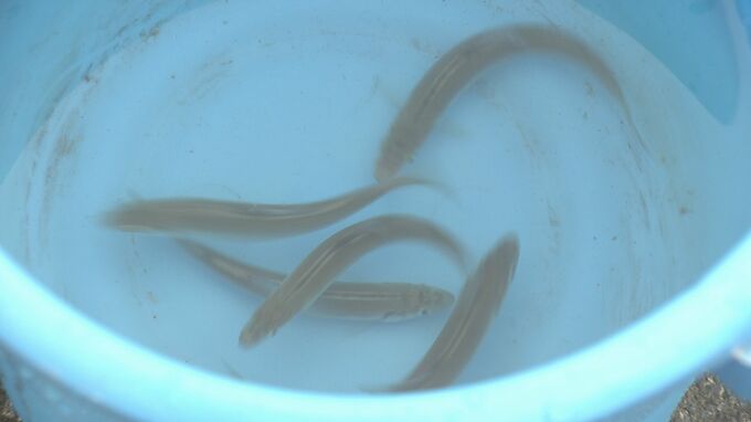 初めてアユを見たという子はアユが泳いでいく姿に興味津々の様子でした。