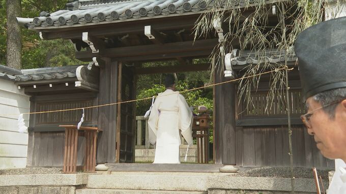 御陵の門は、日頃は閉められていますがきょうは門が開けられ、平家ゆかりの人らおよそ30人が参加して執り行われました。およそ840年前の壇ノ浦の戦いで平家が敗れ安徳帝はわずか8歳で入水し命を落としました。