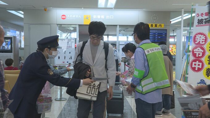 帰省などで混雑する山口宇部空港で、警察官らが頻発するうそ電話詐欺の被害を防止を呼びかけました。宇部警察署の警察官や防犯連絡所の指導員など12人が、山口宇部空港の到着ロビーで、SNS型投資詐欺やうそ電話詐欺の防犯チラシなどを帰省客に手渡して、注意を呼びかけました。
