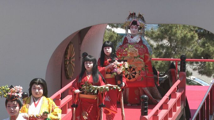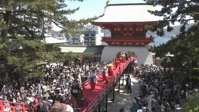 源氏と平家の最後の戦い「壇ノ浦の合戦」に由来する祭りで8歳で亡くなった安徳帝霊を慰めるため、遊女に身を落とした平家の女官が命日にお参りしたのが始まりとされています。