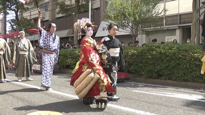 呼び物・先帝祭があり絢爛豪華な衣装を身にまとった5人の太夫が市内を練り歩く上臈道中が行われました。