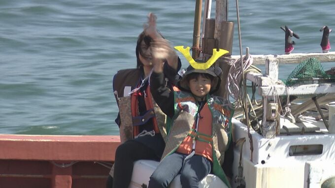 これまでの武者の乗船はなくなり、市内から応募したおよそ30人の小学生と保護者が参加。