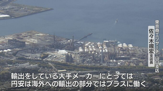 「大手の製造業者っていうのがたくさん生産拠点を持っているというのが山口県の特徴ですので、輸出をしている大手メーカーさんにとっては、わりとまあ円安っていうのは海外への輸出の部分ではプラスに働くってことがあるんですけども」