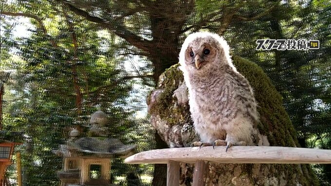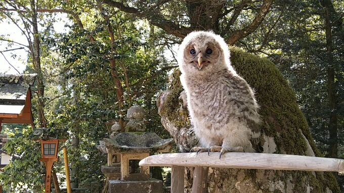 フクロウが姿を現したのは山口市徳地地区の三坂神社で、今月3日、社殿の屋根裏から顔を出しているのを、神主が見つけました。