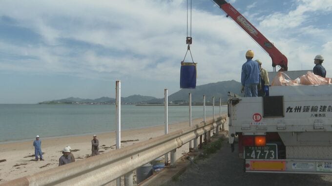 もっとも漂着物が多かったとみられる下関市の綾羅木海岸では作業員が、撤去作業を行いました。
