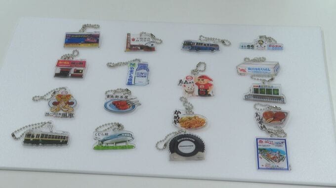 宇部市の会社が製作運営し、地元を盛り上げようと去年4月に宇部市から始まり下関市で5市目になります。昔懐かしい、地元の人しか知らないような場所やグルメなどをデザインした18種類のキーホルダーが入っています。