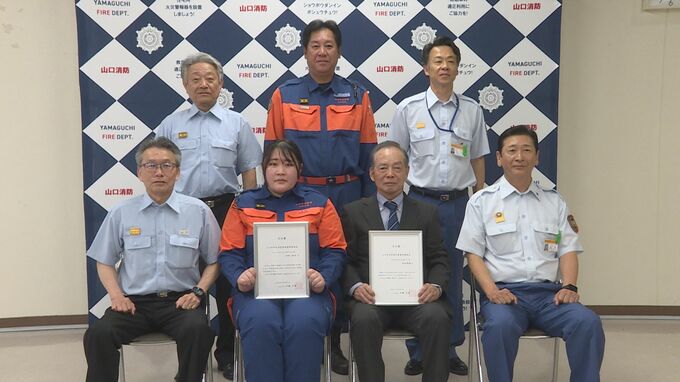 奨励金が贈られたのは、元・学生消防団員で、ことし4月から旭幼稚園(山口市)に勤める河村真佑さんと、幼稚園です。