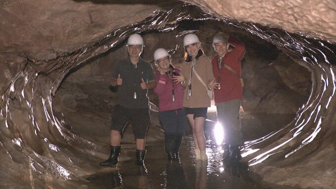 4人は26日から秋吉台やサファリランドなどを視察し、この日は探検ツアーとして天然記念物の景清洞を訪れました。
