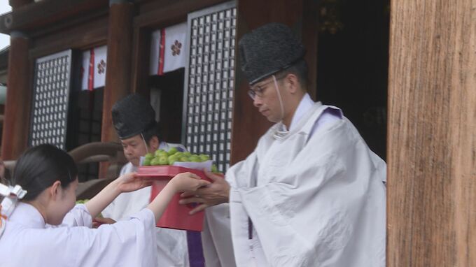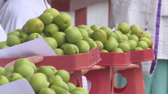 収穫した梅の実は神前に供えられたあと、塩漬けして天日干しにされ「お福梅」として祈願者に配られるほか、正月に「梅茶」として振る舞われるということです。