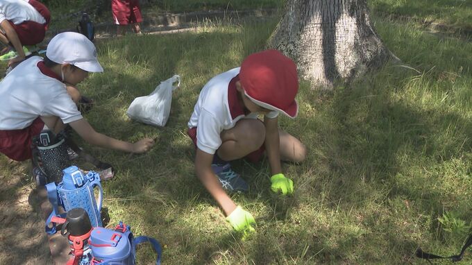 児童らはクラスごとに公園や道路などに分かれて、地域の人と協力しながらおよそ1時間作業しました。