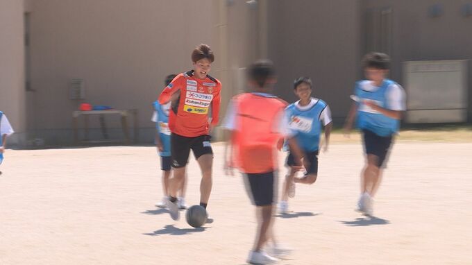 山陽小野田市の埴生中学校を訪れたのはレノファ山口キャプテン、河野孝汰選手です。