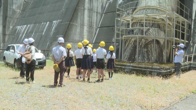 小学生が水力発電について学ぶ教室が7日萩市であり、学校近くにある県内最大の水力発電所を見学しました。
