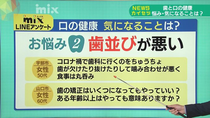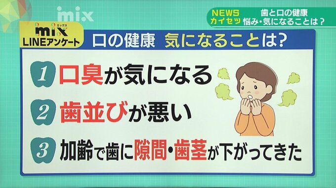 永岡アナ)口と全身の健康には大きな関係があるということですが、皆さんはどんなことが気になっているのかアンケートしてみました。