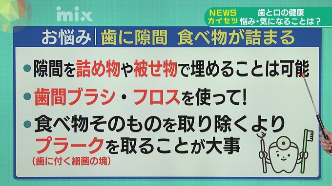 <歯の隙間に食べ物が詰まる>
