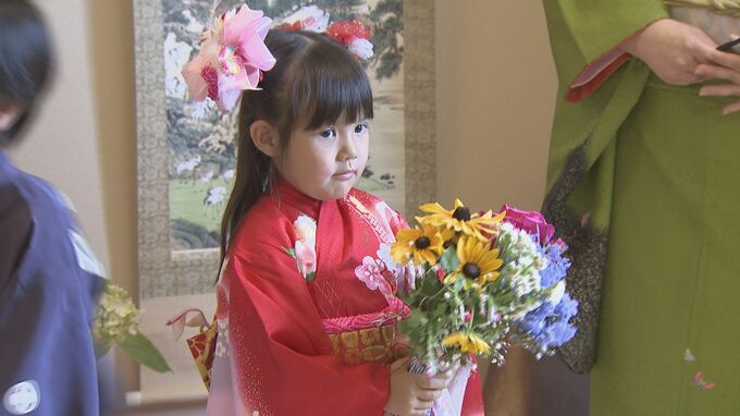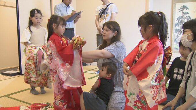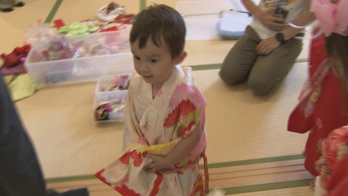 長女の玲奈ちゃんは同年代の子どもたちと着物を着せてもらってウクライナの家族に見せる日本での思い出を作りました。