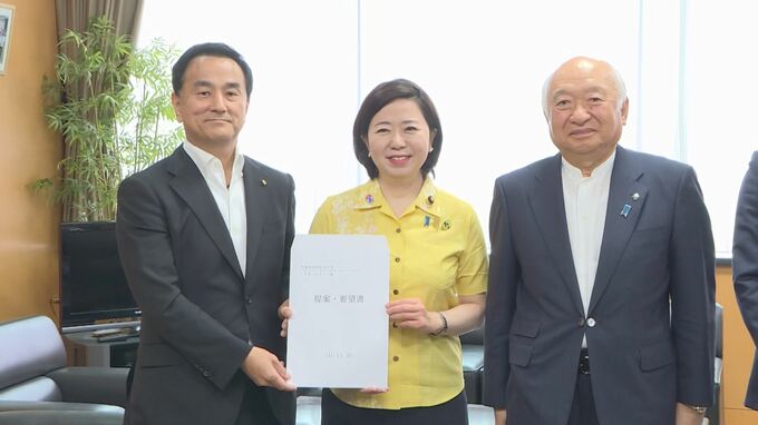 内閣府では、新たに超重点要望に掲げた戦略的で総合的な人口減少対策の推進などを求める要望書を、自見はなこ内閣府特命担当大臣に手渡しました。