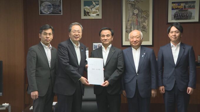 けさ村岡知事は、柳居県議会議長や県の幹部らとともに自民党本部を訪れ、県選出の国会議員らに要望の内容を説明しました。