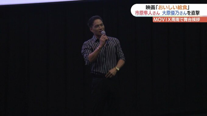 現在公開中の映画『おいしい給食』の舞台挨拶が22日、山口県下松市でありました。