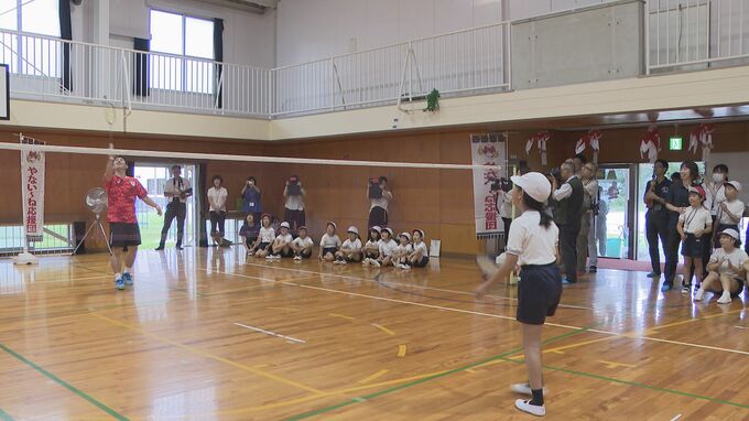 山口県柳井市出身でパリオリンピック・バドミントン代表の、保木卓朗選手が、出場を前に母校を訪問しました。