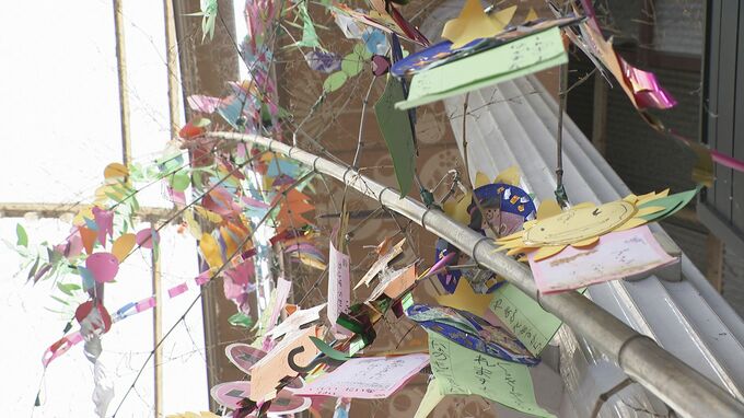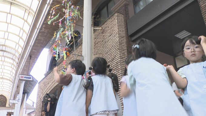 七夕に向け、山口市の幼稚園児が短冊を付けた笹を飾りました。