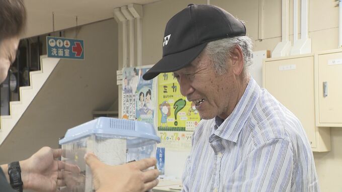数ミリほどに育った幼虫を、職員が訪れた人たちの虫かごに丁寧に移し替えていました。