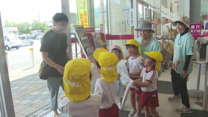光警察署の署員や市内の浅江南保育園の園児らが、スーパーマーケットを訪れる客に自転車の鍵かけなどを呼びかけるチラシを配りました。県警は、夏休み前に防犯意識を高めてもらおうと、7月8日から2週間を、「夏の自転車盗被害防止対策強化期間」としています。
