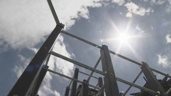 午後1時半、市内の公園はふだんは水遊びをする親子連れでにぎわいますが…暑すぎたためでしょうか、人の姿はまばらです。