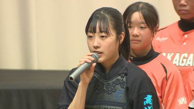 壮行会では、各部の主将が試合に向けた決意を述べました。