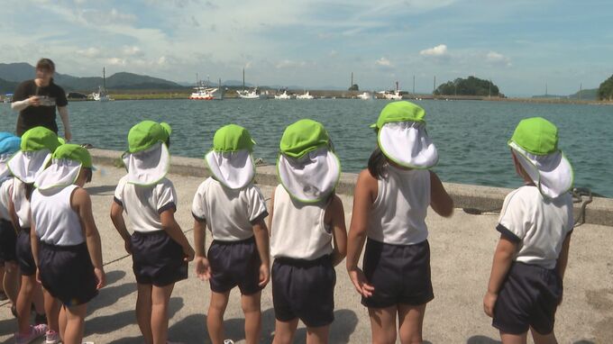 山口県阿武町で23日、園児がカサゴの稚魚500匹を海に放流しました。