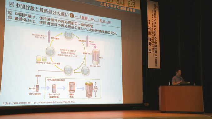 また「中間貯蔵は、再処理前の一時的保管」で、「最終処分は、再処理後の高レベル放射性廃棄物いわゆる”核のゴミ”の処分」と、懸念される両者の違いなども説明しました。