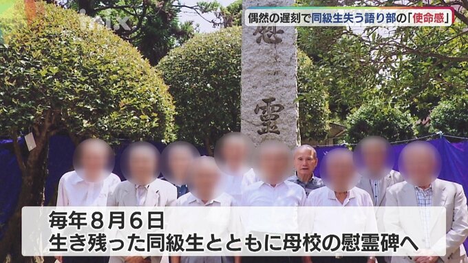 毎年8月6日は、生き残った同級生ともに母校の慰霊碑を訪れています。