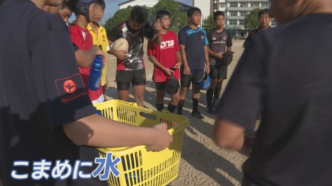 部員がつらそうにしていないか、表情や様子を観察します。ラグビー部の練習は課外授業を挟んで、早朝と昼過ぎに1時間ずつ、分散して行います。