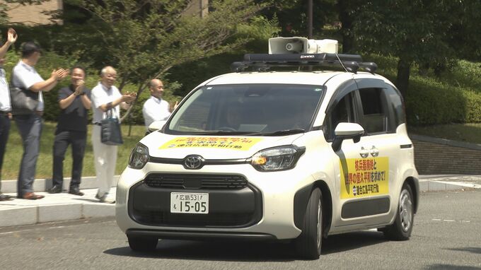 労働団体の連合広島は、長崎県で開かれる連合の平和集会に向かう道中、核兵器の廃絶を訴えるキャラバンを毎年行っています。