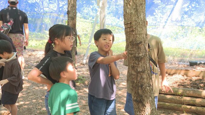 人気は、1200平方メートルのクヌギ林をネットで覆ったかぶと虫ドームです。およそ500匹のカブトムシが放し飼いにされています。