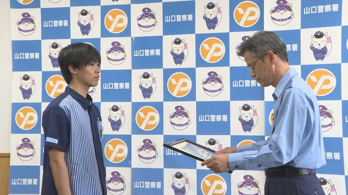感謝状が贈られたのは、ローソン山口大内矢田南四丁目店のアルバイト店員・小林純さんです。