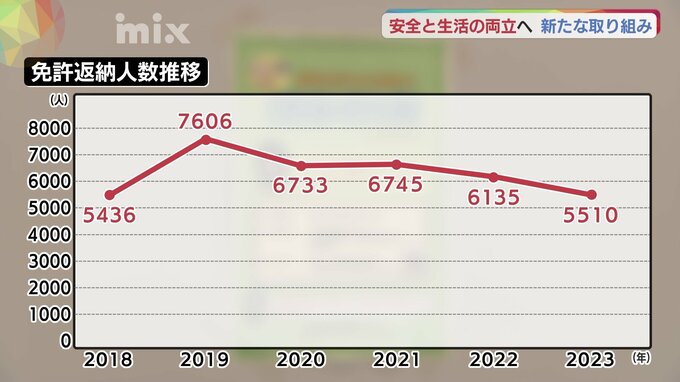 高齢者に免許の自主返納を勧める動きもあります。県内の免許返納は2018年に5436人。その翌年2019年には7606人と増えましたが、去年は5510人でした。2019年をピークに、減少傾向にあります。