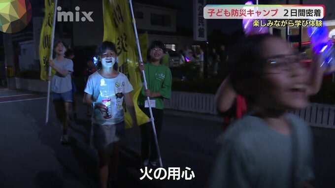 午後8時。自分たちで作ったペットボトルランタンを手に、夜回りをしながら危険な場所を確認します。
