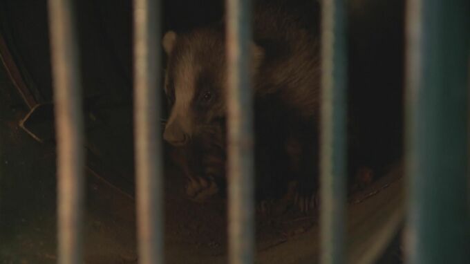 きのう仕掛けた「ドラム缶わな」にはアナグマがかかっていました。