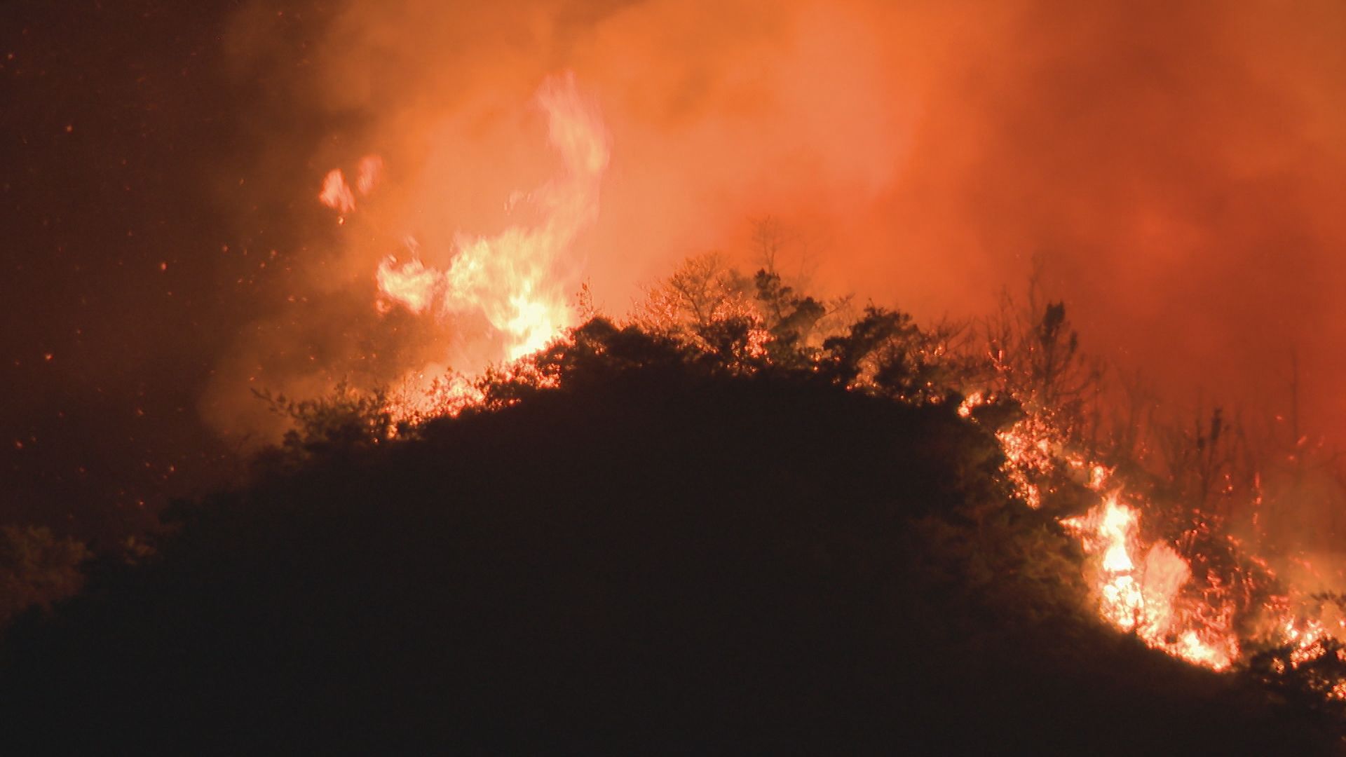発生からおよそ4時間後、火は山の斜面を覆い尽くすほどに燃え広がりました。