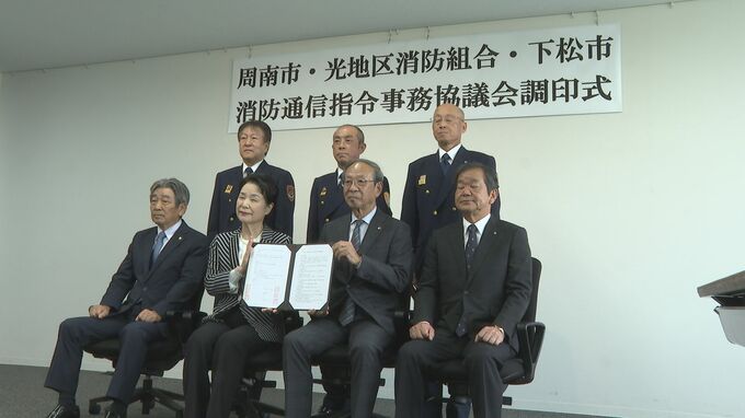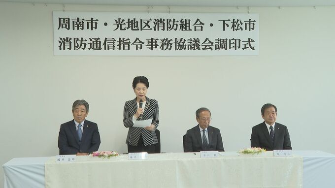 山口県の東部 周南地域の消防指令事務を共同で行うことになり、調印式がありました。