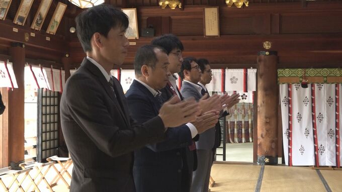 23日、防府天満宮(山口県防府市)で、県内で生産されたお茶「うかるっ茶」の合格祈願がありました。