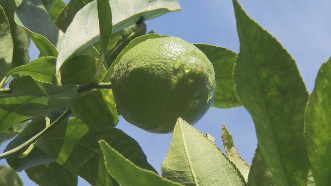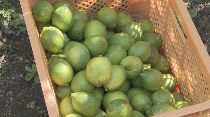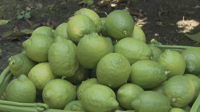 下松市の笠戸島で、特産の「青いレモン」の収穫が本格的に始まりました。