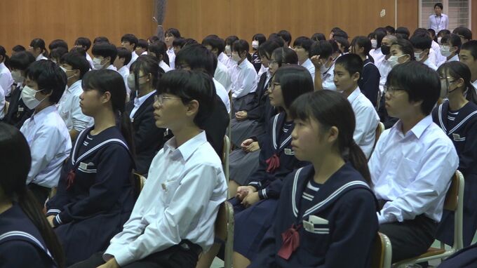 山陽小野田市内の中学校では、毎年「戦争の悲惨さ」や「平和の尊さ」を学ぶ講演会を行っており、箕牧さんは受賞決定後、初の講演となりました。