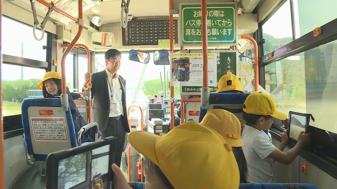 教室は、自家用車が普及し、子どもたちがバスに乗る機会が少なくなっていることから、サンデン交通の協力のもと開かれました。