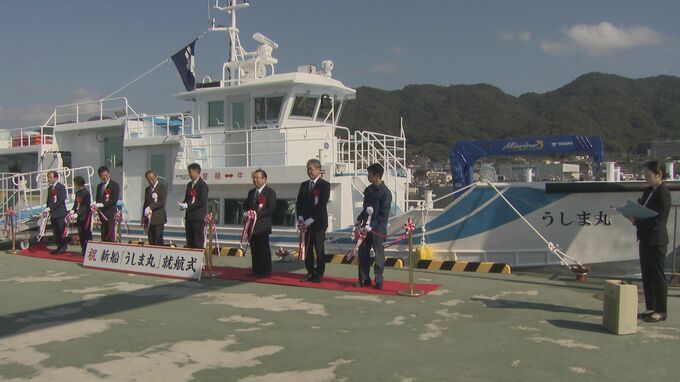 20年ぶりに新船に生まれ変わった「うしま丸」は室積港と南東に8.4キロの沖合に浮かぶ牛島とを結ぶ定期船として就航します。