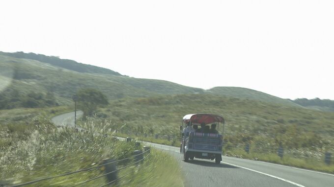 秋吉台の成り立ちをトゥクトゥクに乗りながら、学ぶことができるガイドツアーや、クイズラリーなどがあり、訪れた人は、楽しみながら秋吉台を学んでいました。
