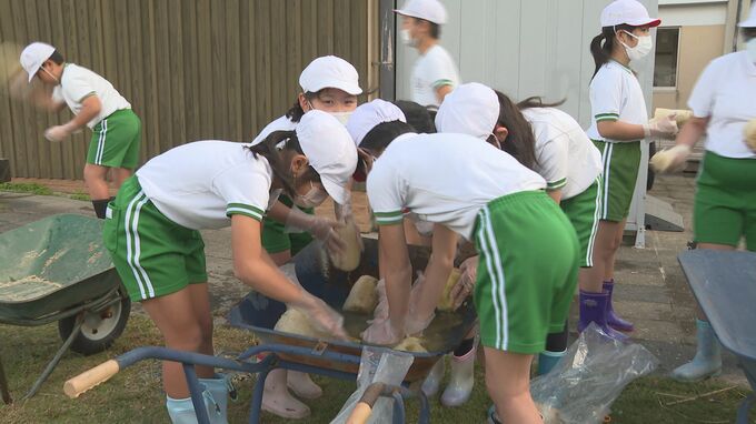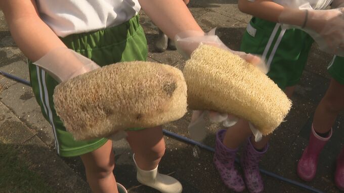 山口県萩市の小学生が、自分たちで育てたヘチマをたわしにする体験をしました。